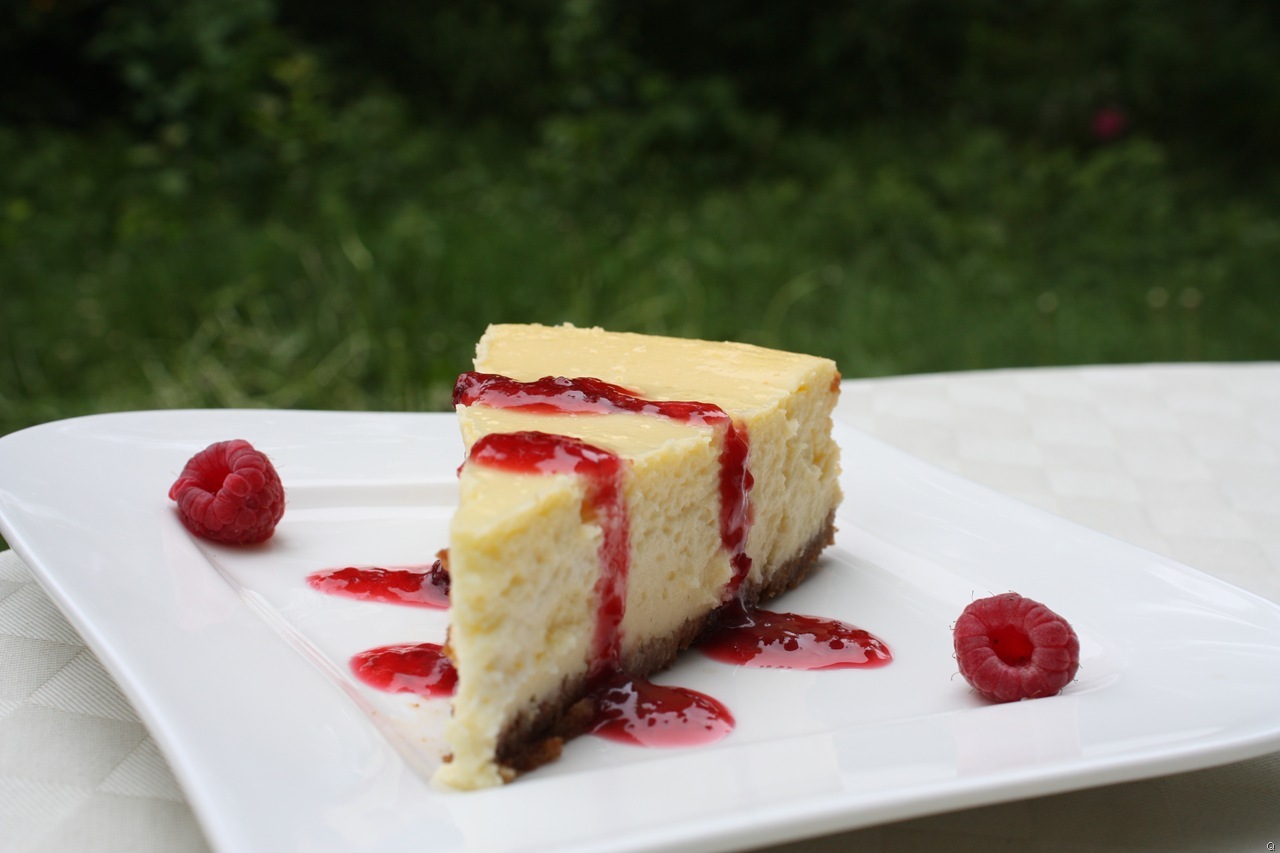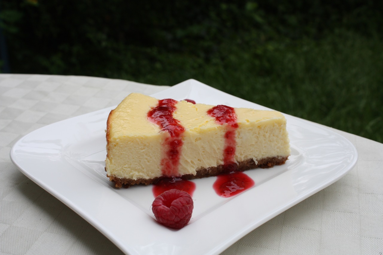 Putting the looks aside, the cake tasted delicious: not too sweet and slightly sour with a hint of vanilla, having a rich and fluffy texture, smooth and creamy interior, however being firmer on the margins so it didn’t reach a uniform consistency… but surely one of the best cheesecakes I have eaten and I am not only saying this because I’ve baked it. The fact is that the cake disappeared into thin air on the same afternoon, served as a dessert to our friends after the BBQ. Everyone loved it and complimented it, giving us more confidence in our baking abilities. We have even proof posted on Twitter later that evening from one of our cake testers, Damir: “Great BBQ evening with an astonishing and delicious New York style cheese cake. We enjoyed it a lot!! :-)”.