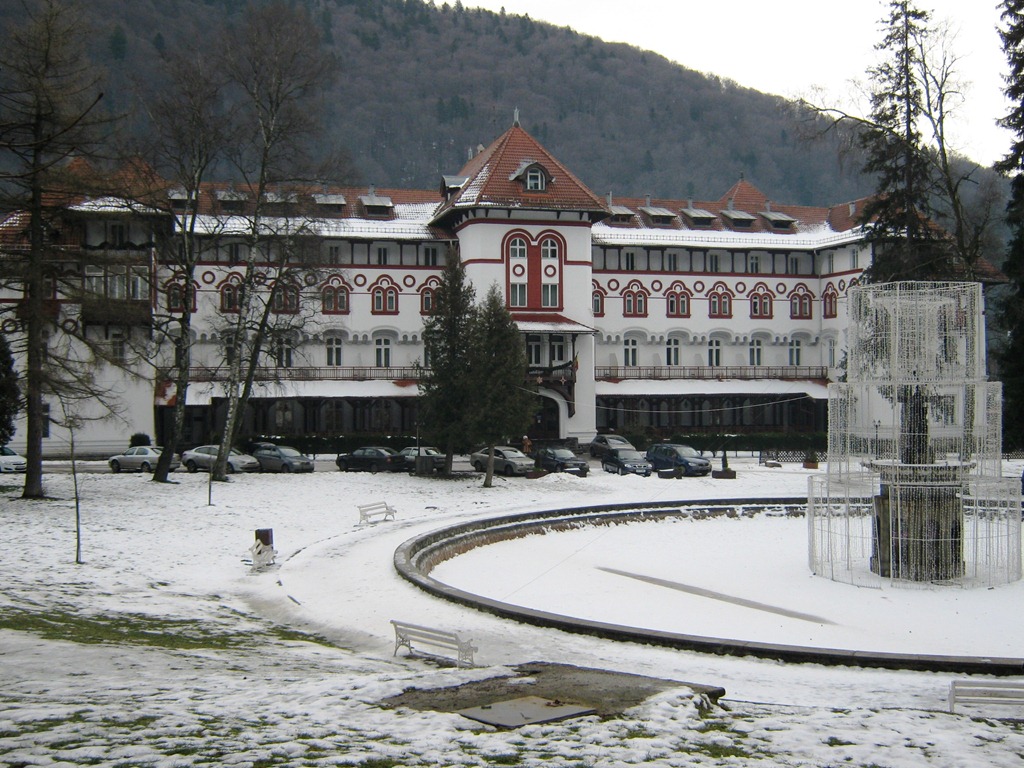That day was warm. Everything was melting. Predeal is the quiet area in the Prahova Valley, so they told us. The action is in Sinaia, so that’s where we went. My mom and brother brought their ice skates (mine was somewhere on the way from Germany to Romania but that’s a long story) so the first thing was to search for the ice rink in Sinaia, which we found easily. My mom and brother changed into their ice skates but I refused as soon as I saw the ice rink. Half of it was melted already and it was bumpy too.