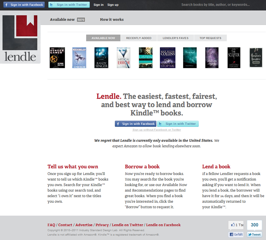 I’ve recently discovered another online Kindle book lending club called Lendle. It’s much better than the previously mentioned Book Lending because it has much more users and most of the books are already lendable so no waiting time.