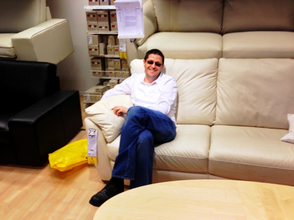 I can completely understand it, spending Saturday at Ikea with a big crowd of people pushing everyone around is not my all time favorite either. Everything is organised so that we had to pass through each section, wheather we wanted or not. My boyfriend needed a break as soon as we went in, thus the picture of the day. Needless to say that the item we were looking for was at the very end.