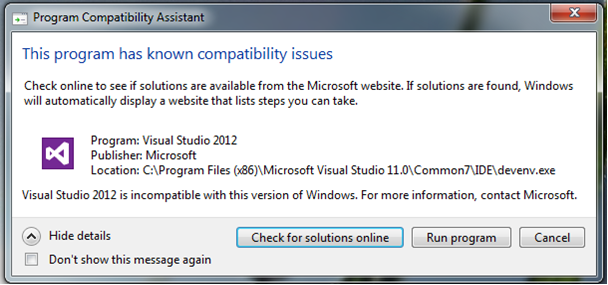 I recently installed Visual Studio 2012 and got the following error when trying to start it: