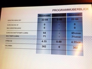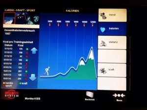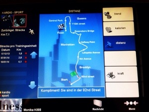 I have to check in on the touch screen using the chip card when I start working out, the exercises are stored on the chip card on each machine and then transferred to the main system when I check out with the card. After every workout, the touch screen displays the total distance of all my cardio workouts and calories burnt. How cool is that?