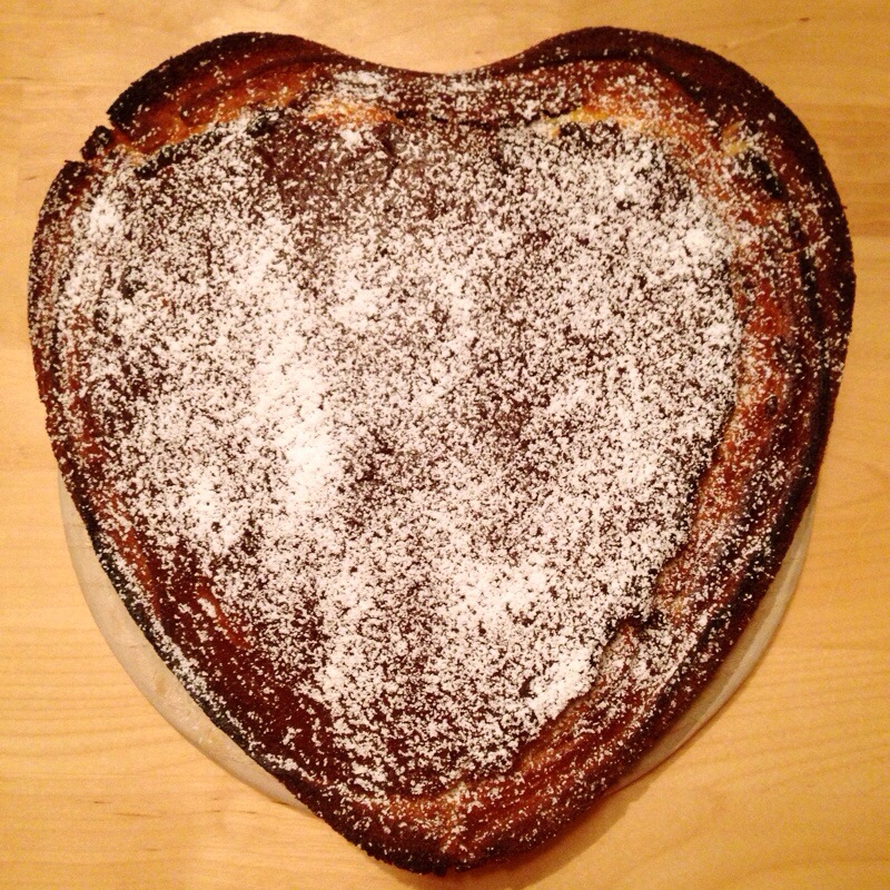 My bf surprised me with a cake tonight, he baked it himself. My mom used to make this as I was small all the time so tonight a slice of this fluffy cake with a cup of milk brought back nice memories. Oh and it is heart-shaped! ๐