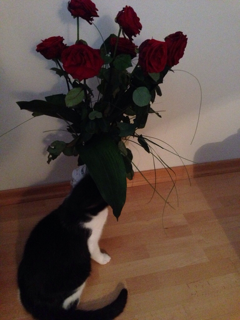And finally here is a random pic of our cat chewing on my beautiful roses. Argh!