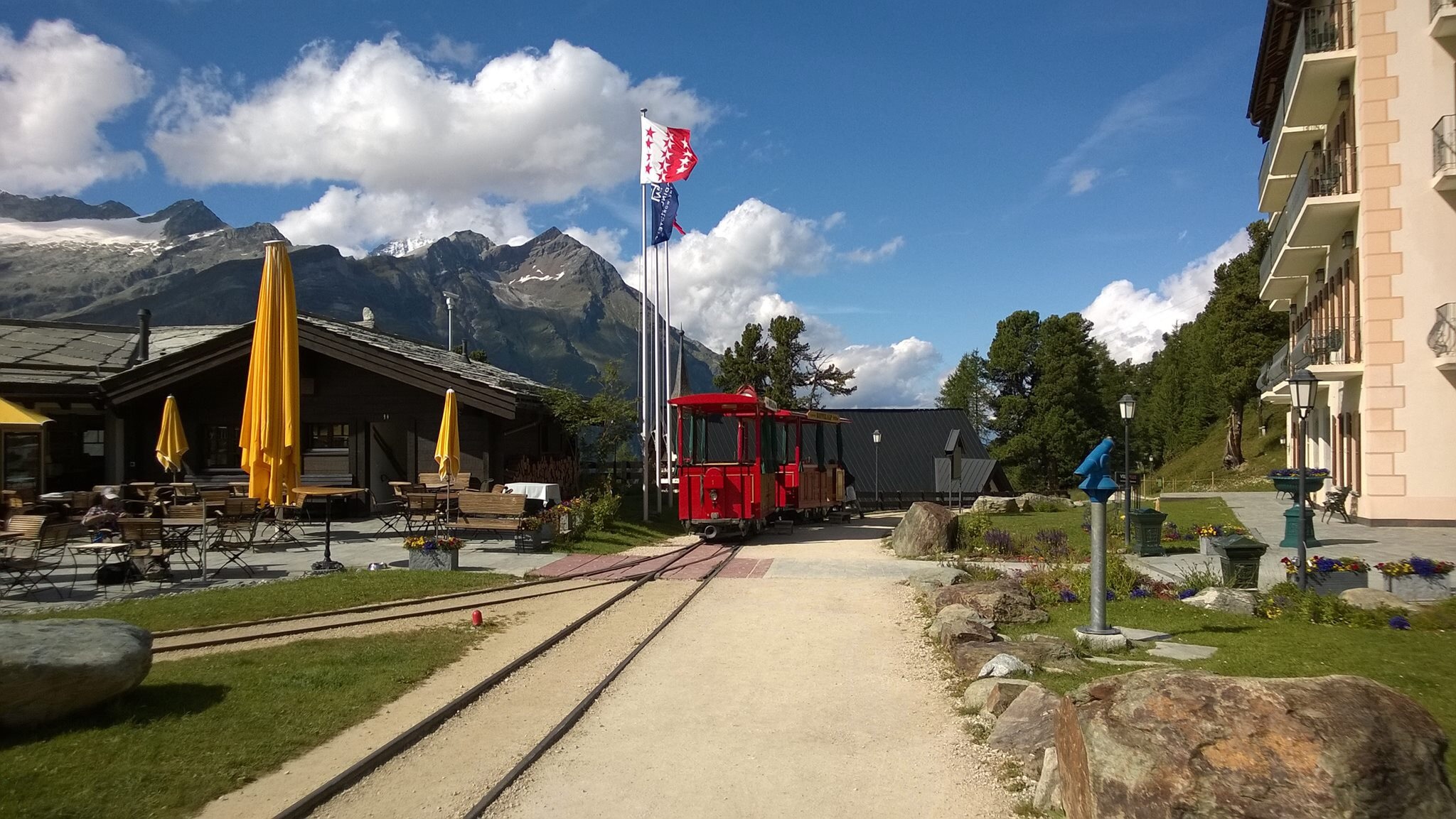 By the time we got to Riffelalp, it was already pretty late, about 5 in the afternoon, and we were hiking for 5-6 hours with only short breaks. Riffelalp is beautiful and there is a great hotel there. The tram on Riffelalp is famous for being the only tram on this high altitude in Europe.