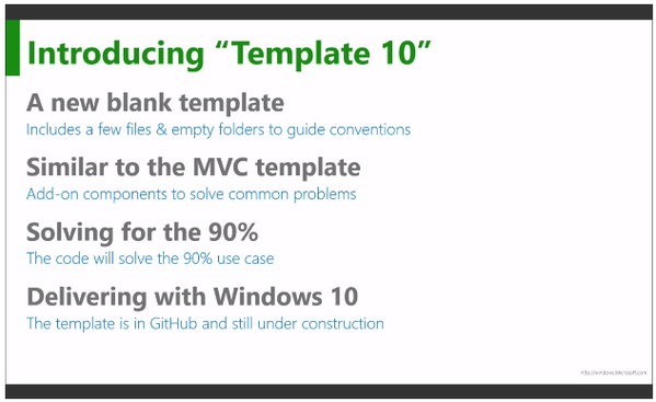 - New Template 10. Contribute to Template 10 on http://aka.ms/template10.