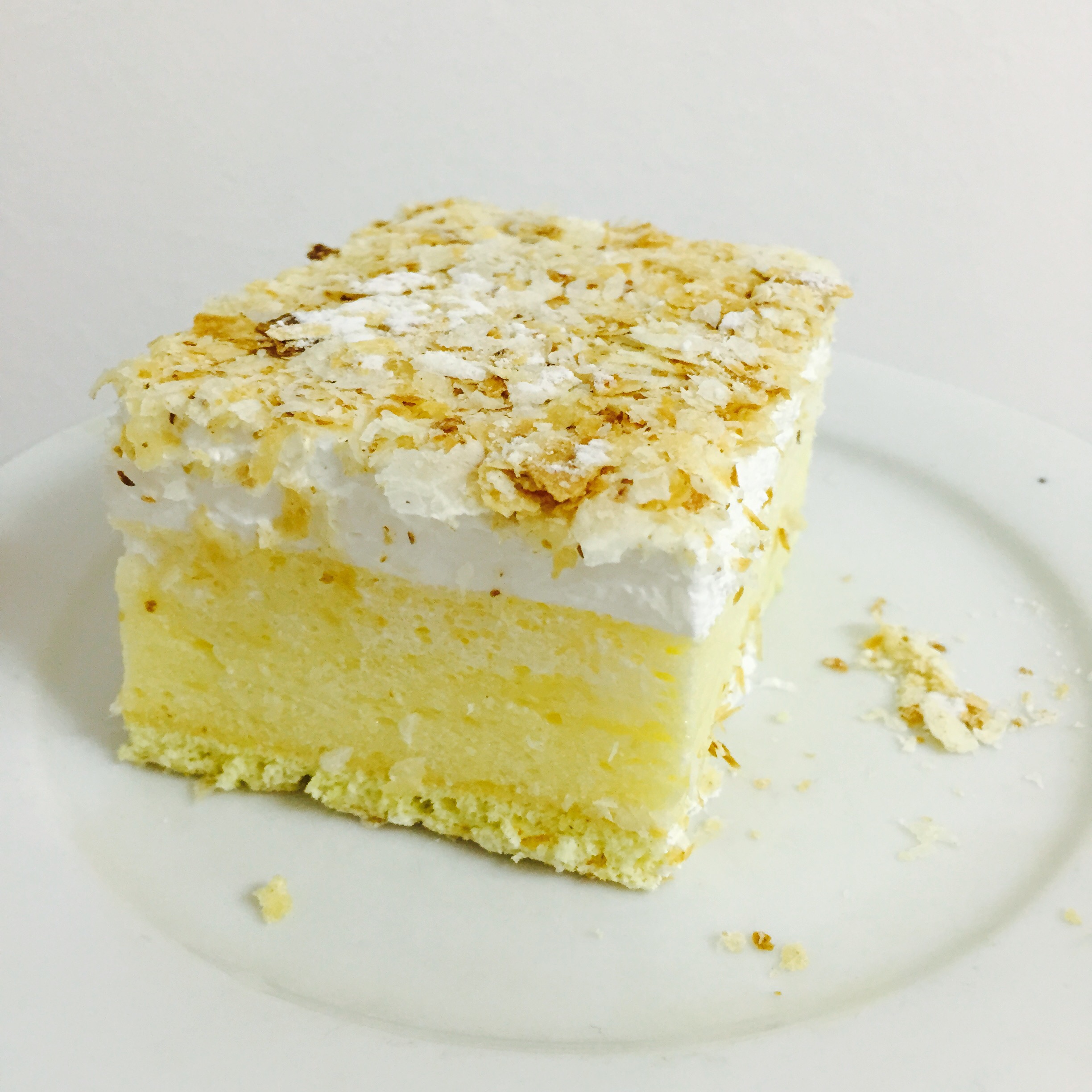 I skipped dessert because I knew that this yummy cremeschnitte was waiting for me at home. 🙂