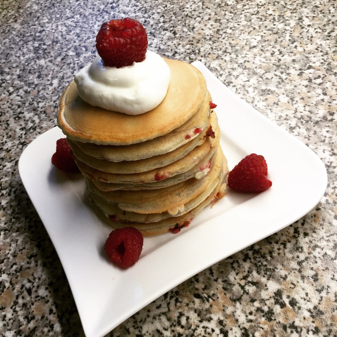 We kicked off Sunday with these delicious healthy raspberry pancakes.