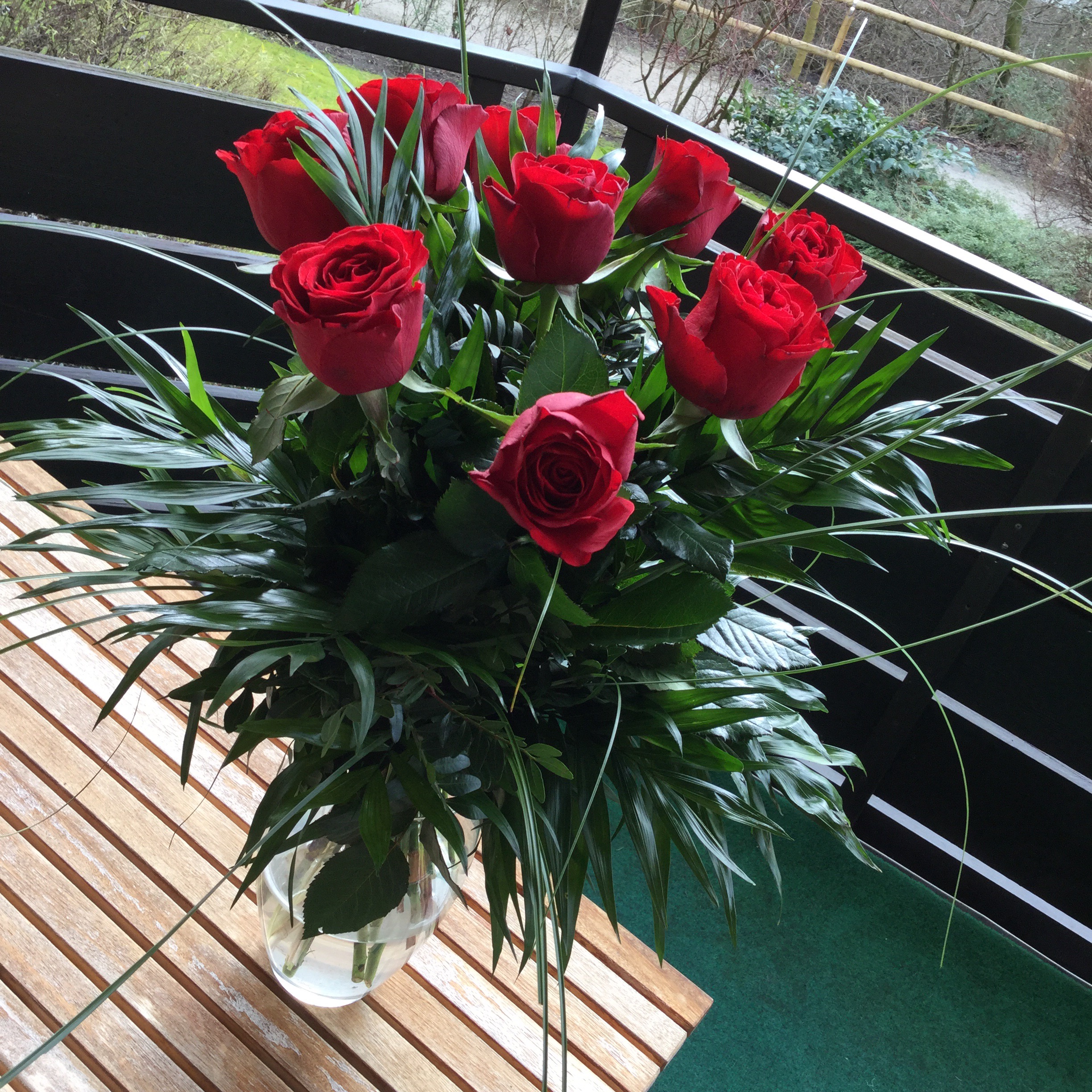 Funny story: I busted my boyfriend yesterday with these flowers which he got for me for Valentine’s Day. He’s been sick for 3 days, barely able to even move, but on Saturday afternoon he secretly sneaked out of the house while I was reading to get me these beautiful roses. I thought I heard his keys so I got up and asked what’s up since he’s been sick and all, and he confessed and showed me the roses. He actually planned to stash them till Sunday and he almost got away with it but I kind of ruined his plans. ๐