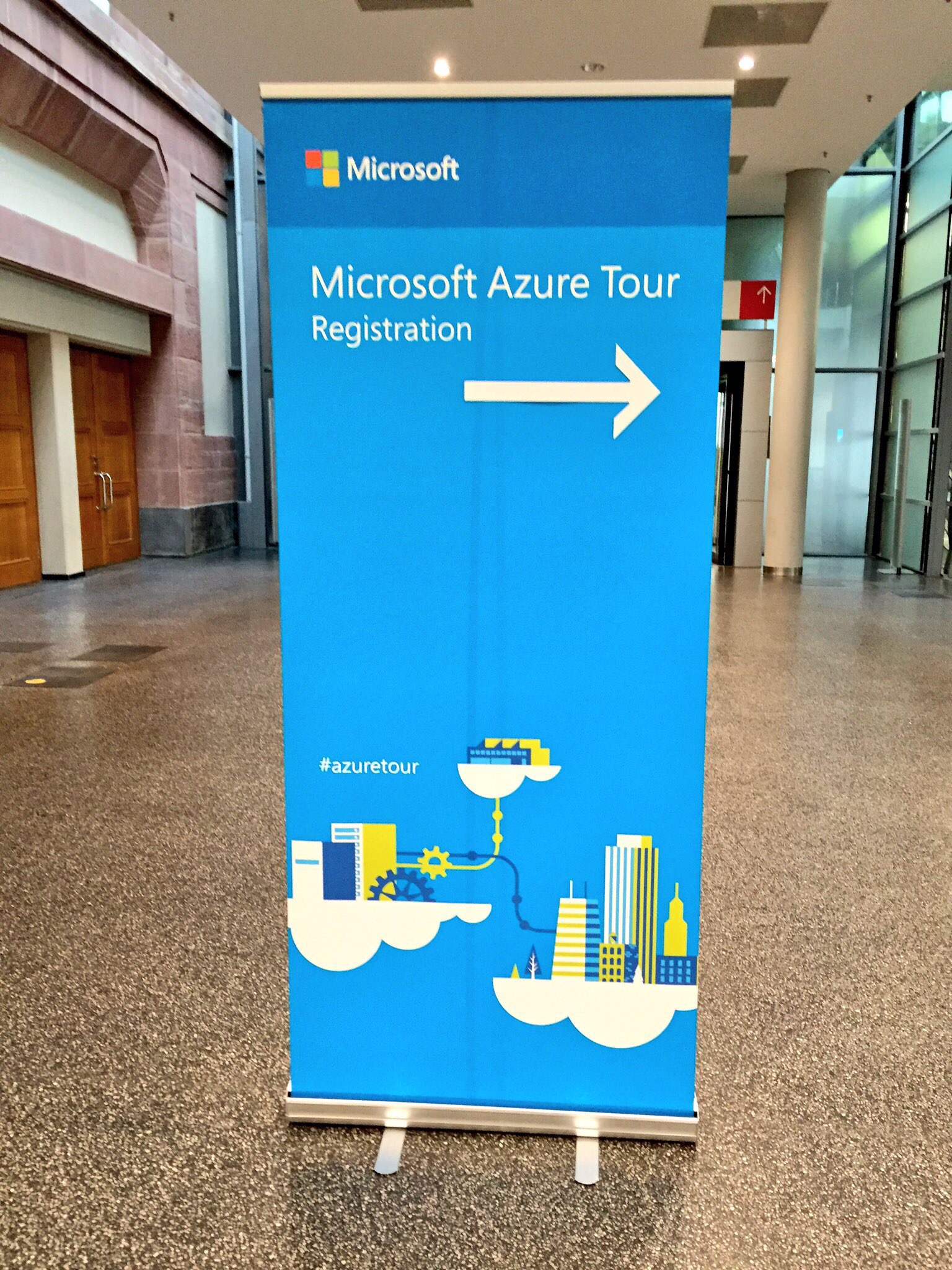 There is no jam on the way, no waiting in line and no overfill room for the keynote, which I experienced unfortunately all too often at Build for example. The Panorama rooms are huge and the room fits everyone who came to the Azure Tour. We have a small present from Microsoft waiting on our seats, a screen wipe with the Azure logo on it and I love it. It’s these little things… ❤️