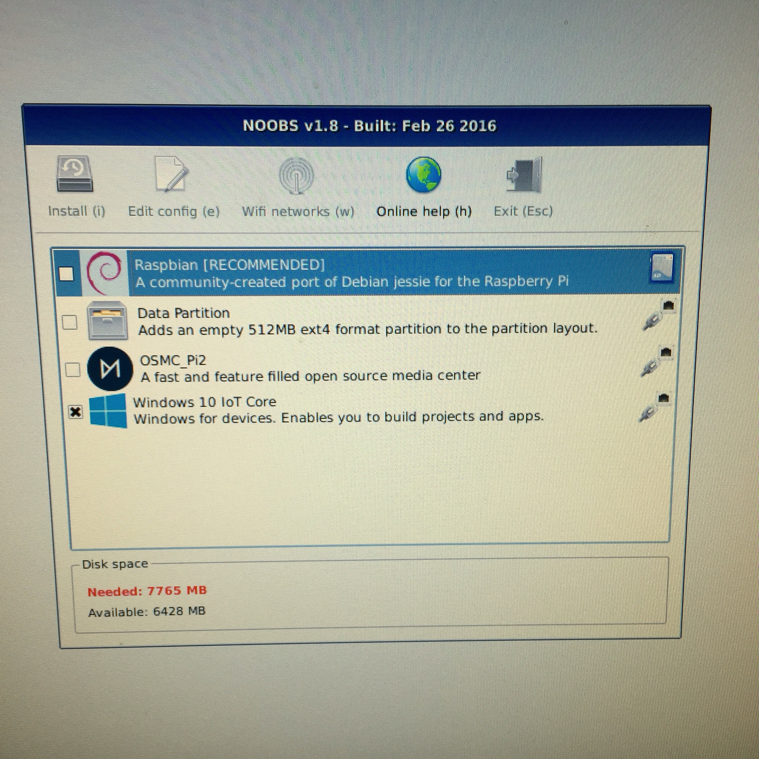 Noobs V1.8, or New Out Of the Box Software is the operating system install manager for the Raspberry Pi, and, if you don’t connect your Pi to the internet, it displays the option to install the recommended Raspbian.