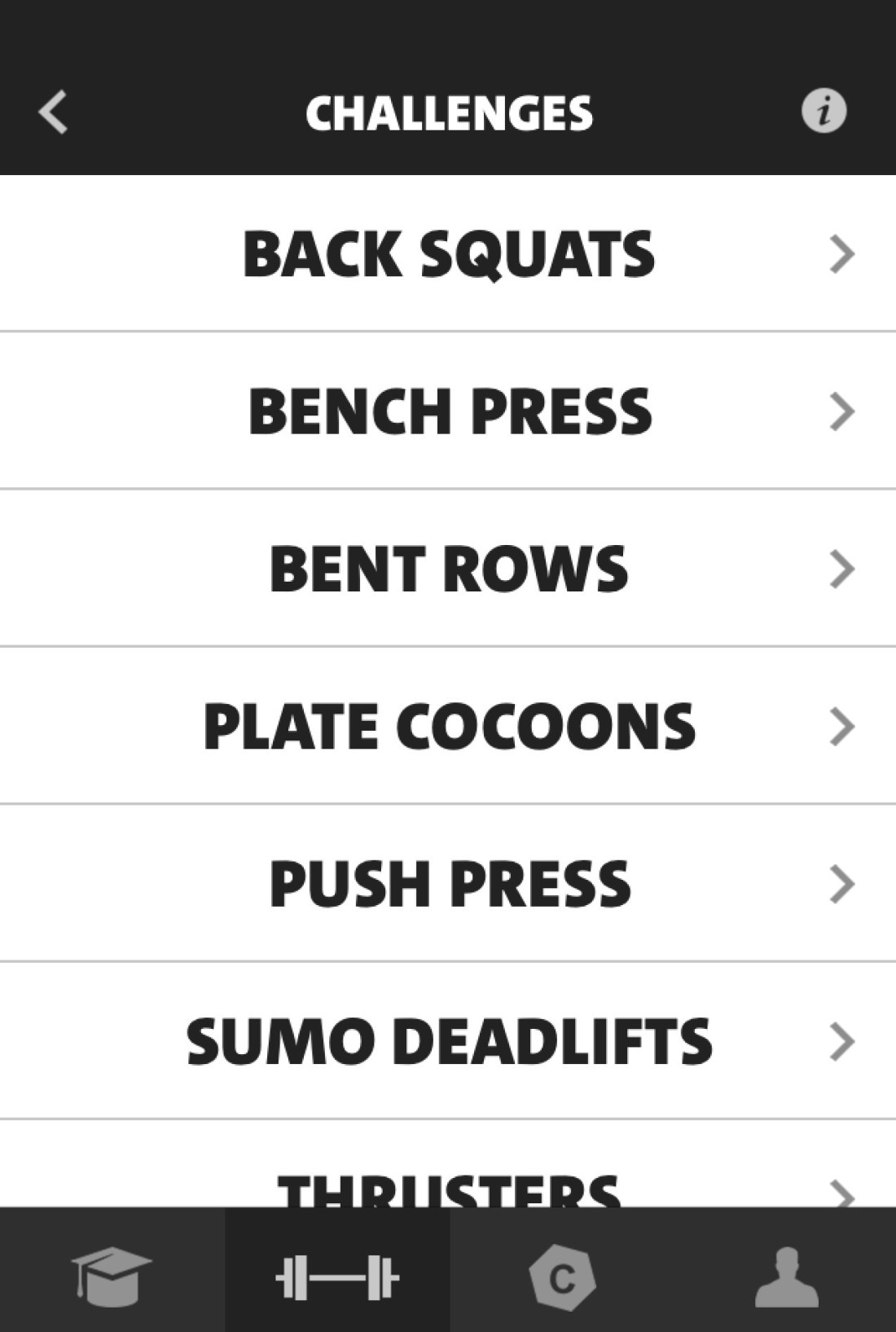 Challenges: challenges are one exercise with a fixed number of reps performed as fast as possible while maintaining proper form.