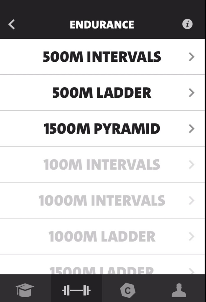 Rowing endurance: rowing workouts consist of intervals with a given distance performed as fast as possible.