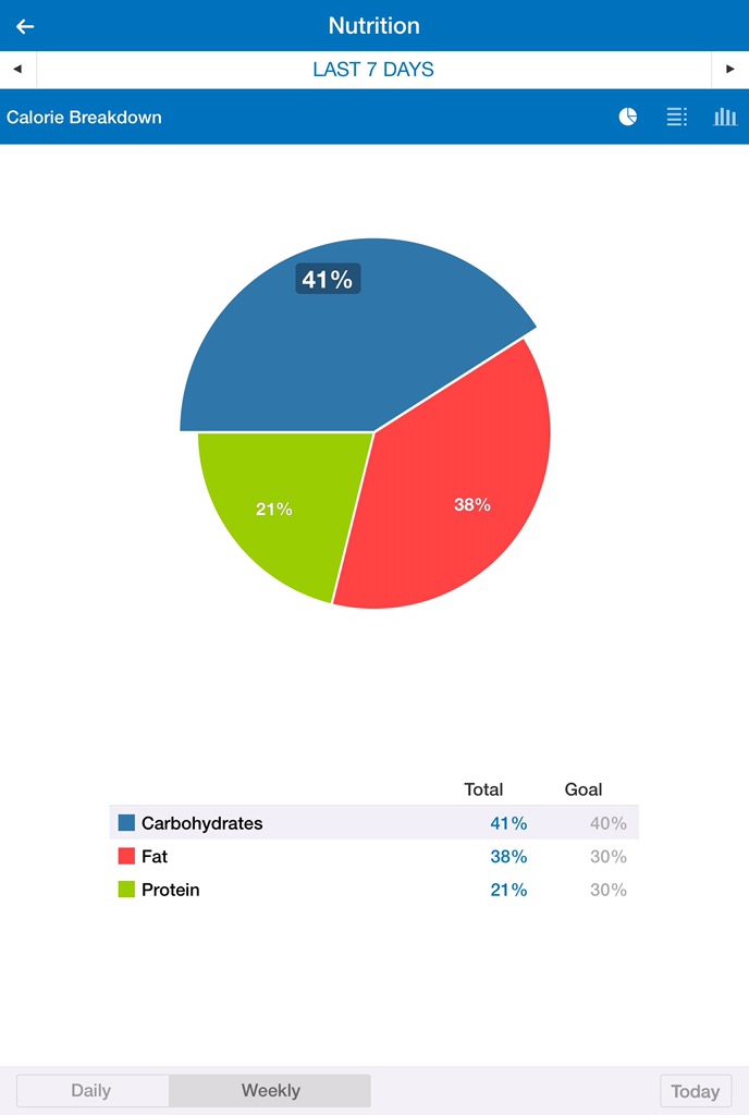 - Stay at the same calories and macros like this week: 40%C-30%P-30%F.