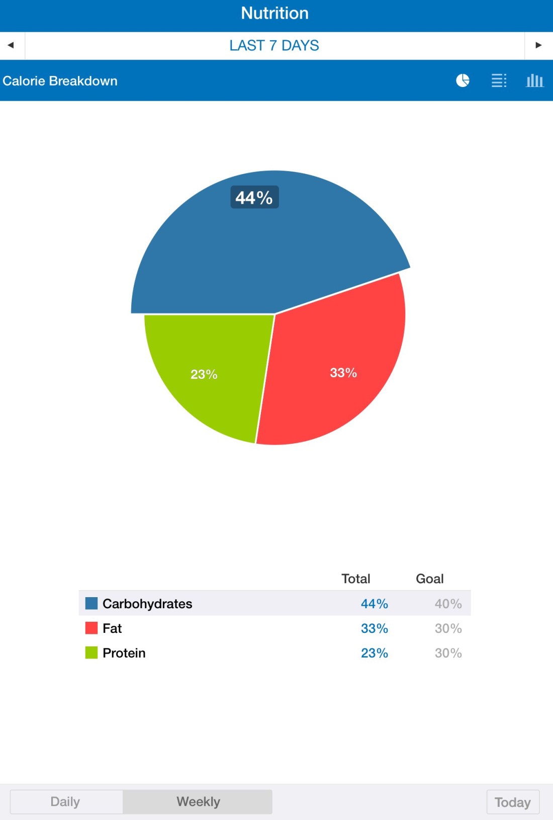 - Stay at the same calories and macros like this week: 40%C-30%P-30%F.