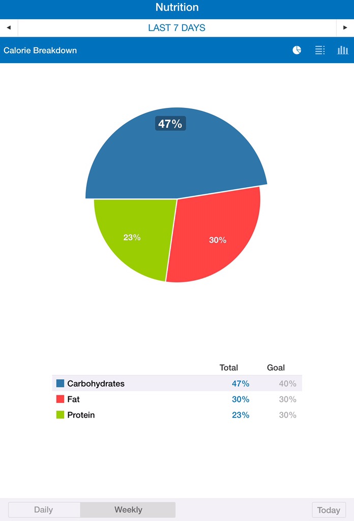 - Stay at the same calories and macros like this week: 40%C-30%P-30%F.