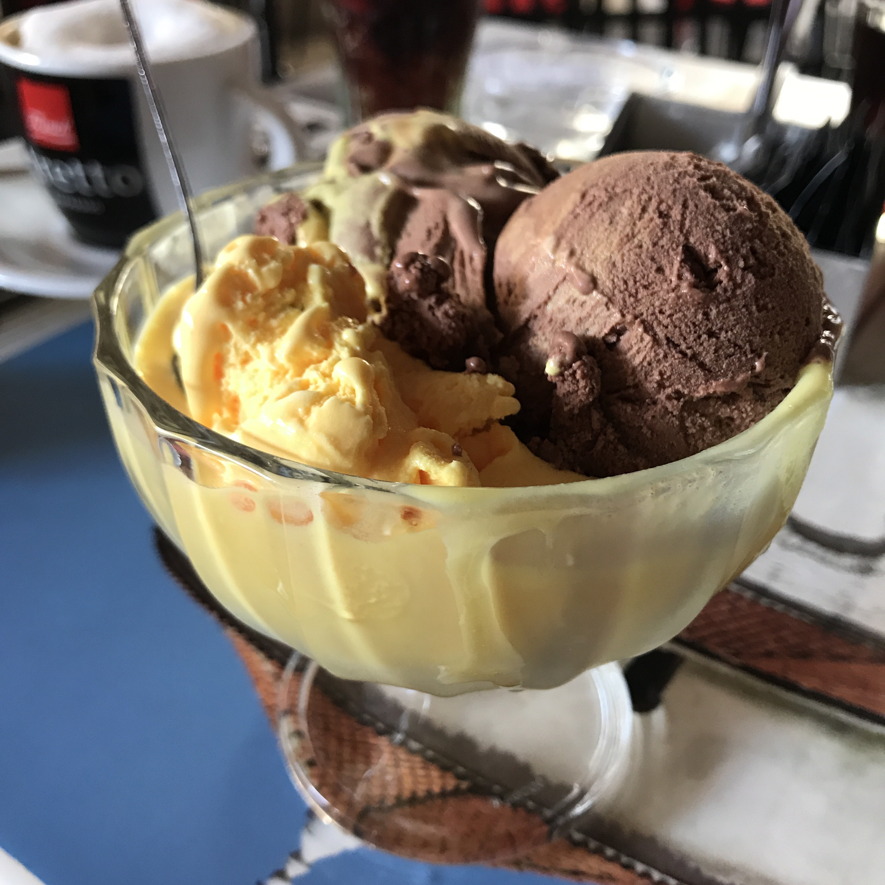 It was time for a coffee and ice cream break. I had mango and chocolate and my bf picked peach and green apple. The ice cream looked better than it tasted. The fruity flavors taste a lot like chemicals.