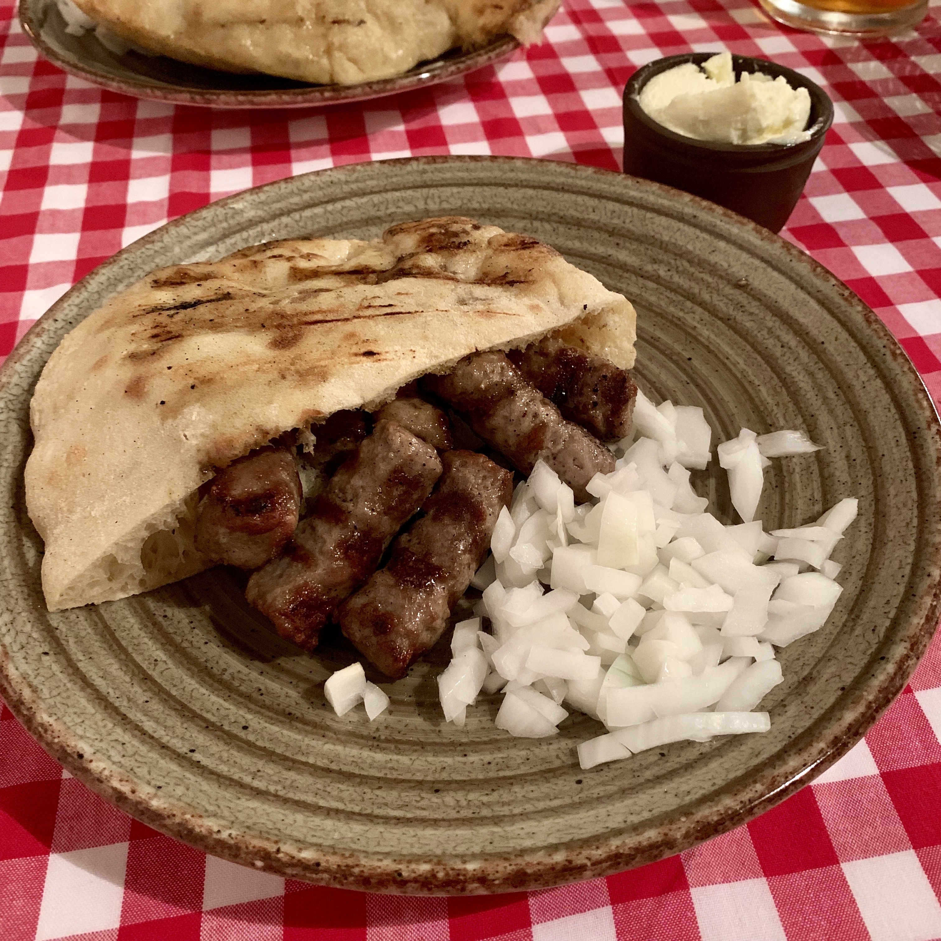 We rested a few minutes and headed out for dinner because we were starving. We tried Jack & Joe Steak and Burger place but it was quite full and the waiters were very unfriendly about accommodating us with a table so we left. It was for the best because we ended up in a street full with bars, pubs and restaurants. We decided to have cevapi at Baščaršija.